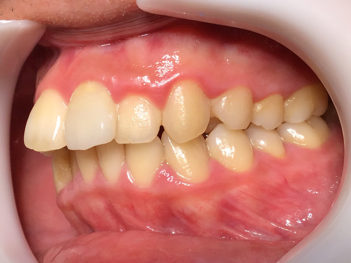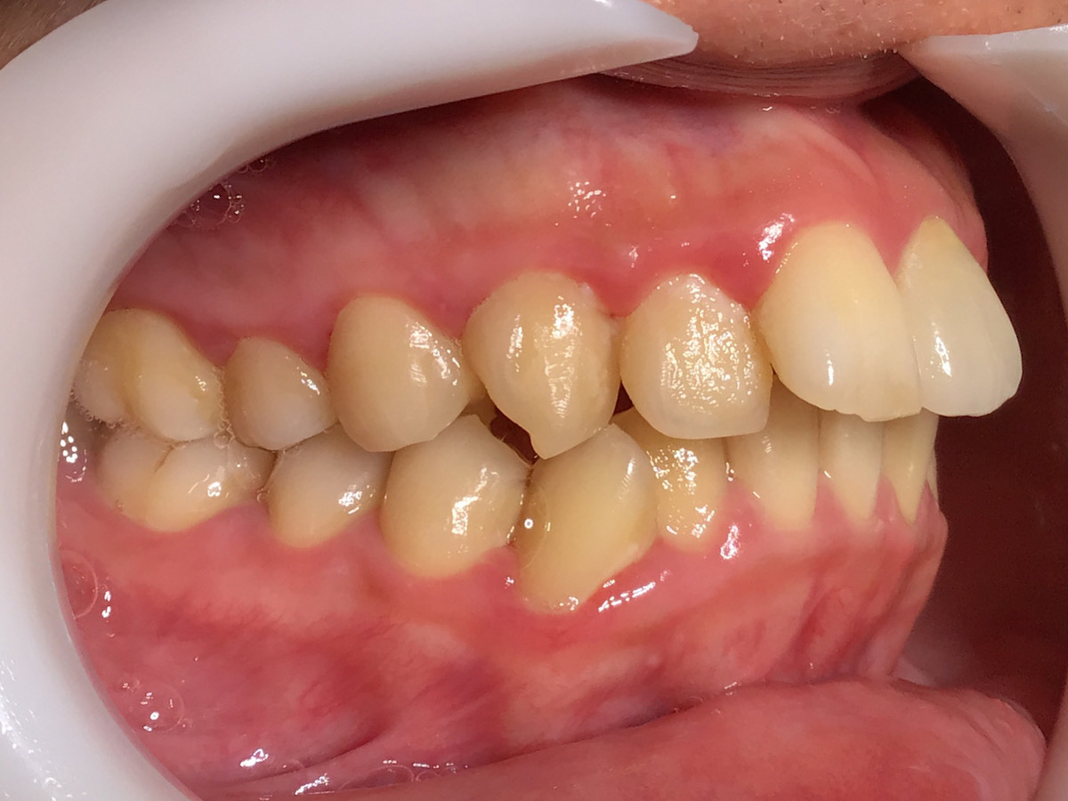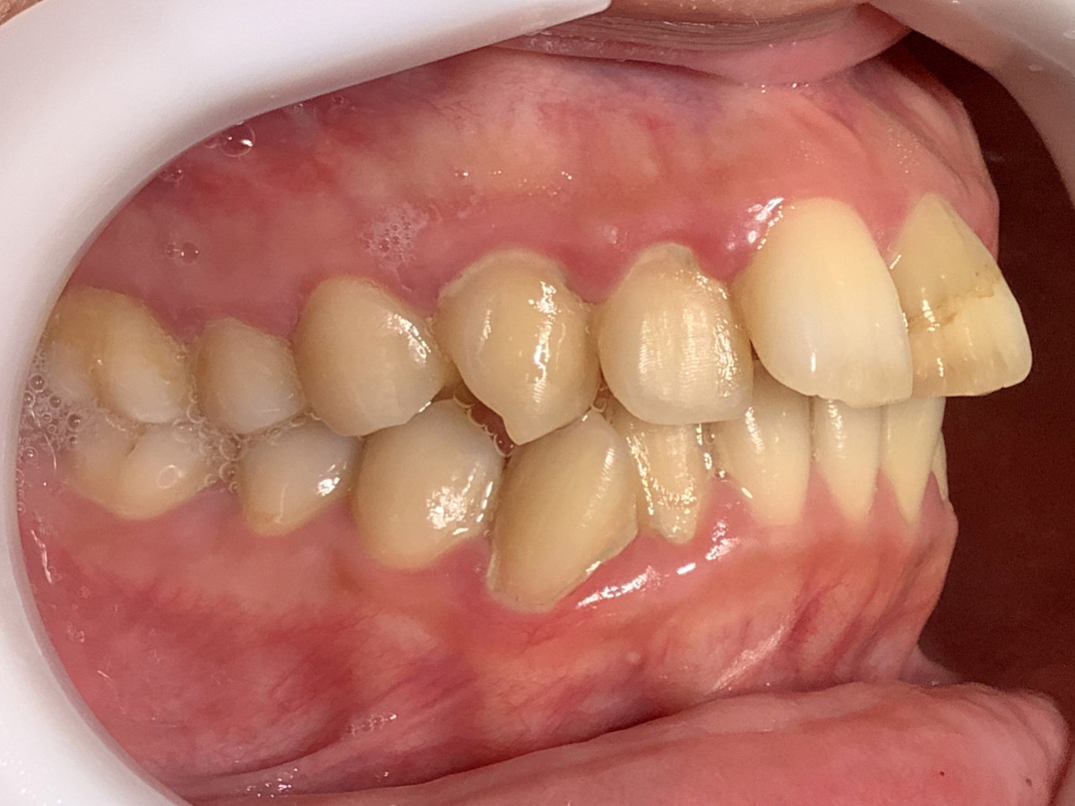 全顎的に口腔内の清掃状況が不良であったため一時的に仮歯に置き換え、改善されてから補綴を行いたかったが患者様の希望で清掃状況は不完全であったが最終修復装置を装着することとしました。補綴装置の形態や色調に関しても何度か相談し、決定しました。